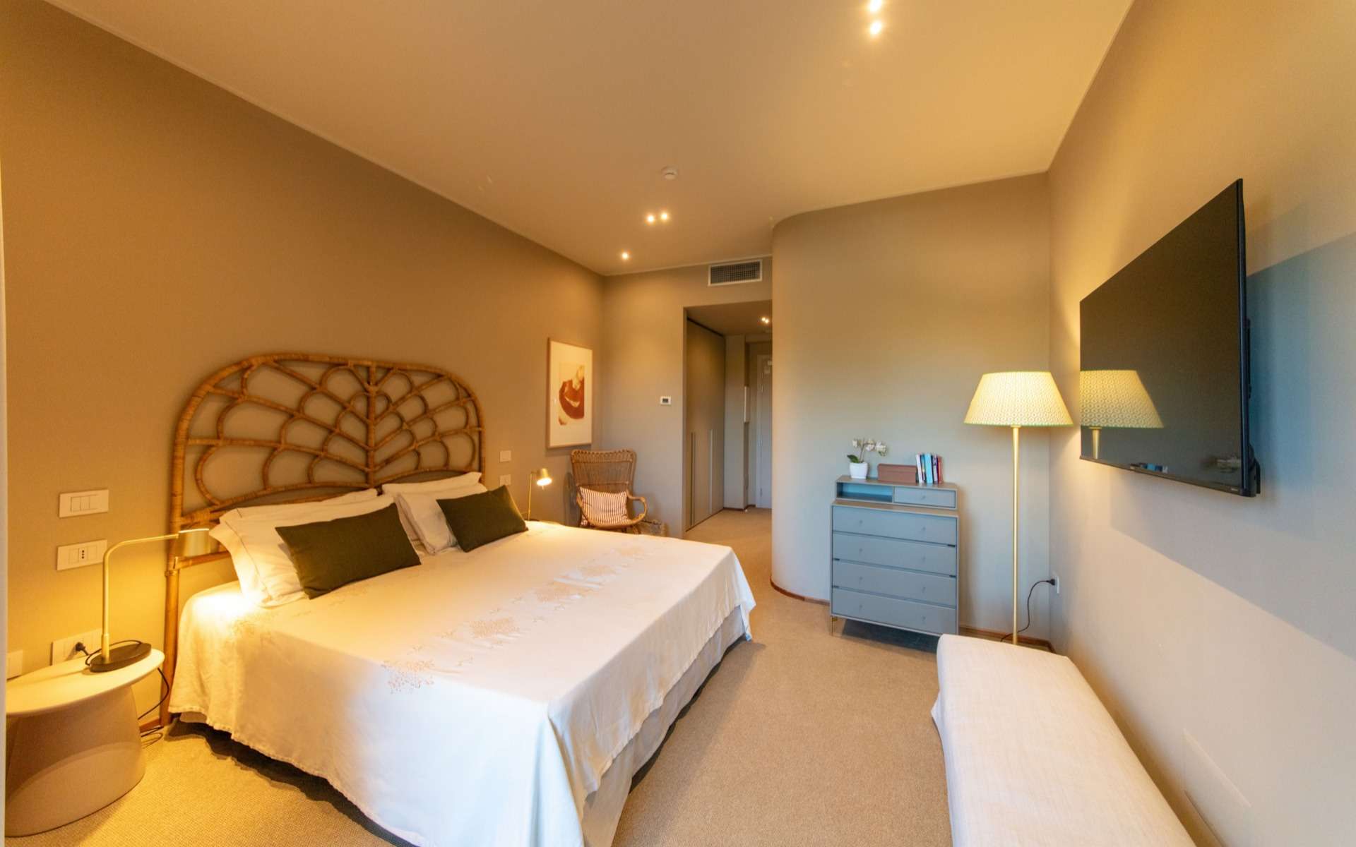 Is Molas Hotel has 75 rooms and one suite. They are laid out on three levels and frame the garden, with its lawn and typical Sardinian shrubs, like a theatre. They are nice and comfortable; every room has bath or shower, free internet wi-fi, air conditioner, heating, walk-in closet, telephone, digital TV, hair dryer, safe and mini-bar. The CLASSIC ROOMS have bathroom with shower or bath and balcony or terrace with garden view. The SUPERIOR ROOMS refurbished in the first months of 2015 and located at reception floor, these rooms have a nice terrace facing the garden. The bathroom is shower provided. The SEA VIEW ROOMS refurbished in the first months of 2015 and located at the first floor, these rooms have a magnificent view on the sea and the Nora tower. The bathroom is shower provided. The FAMILY ROOMS are suitable for a family of two adults with one or two kids. The SUITES are located at the first floor has an amazing and panoramic view. They have a bedroom, a bright living room and a terrace with sea view; it has bathroom with Jacuzzi and walk- in shower. It offers kettle, terry slippers and bathrobe.