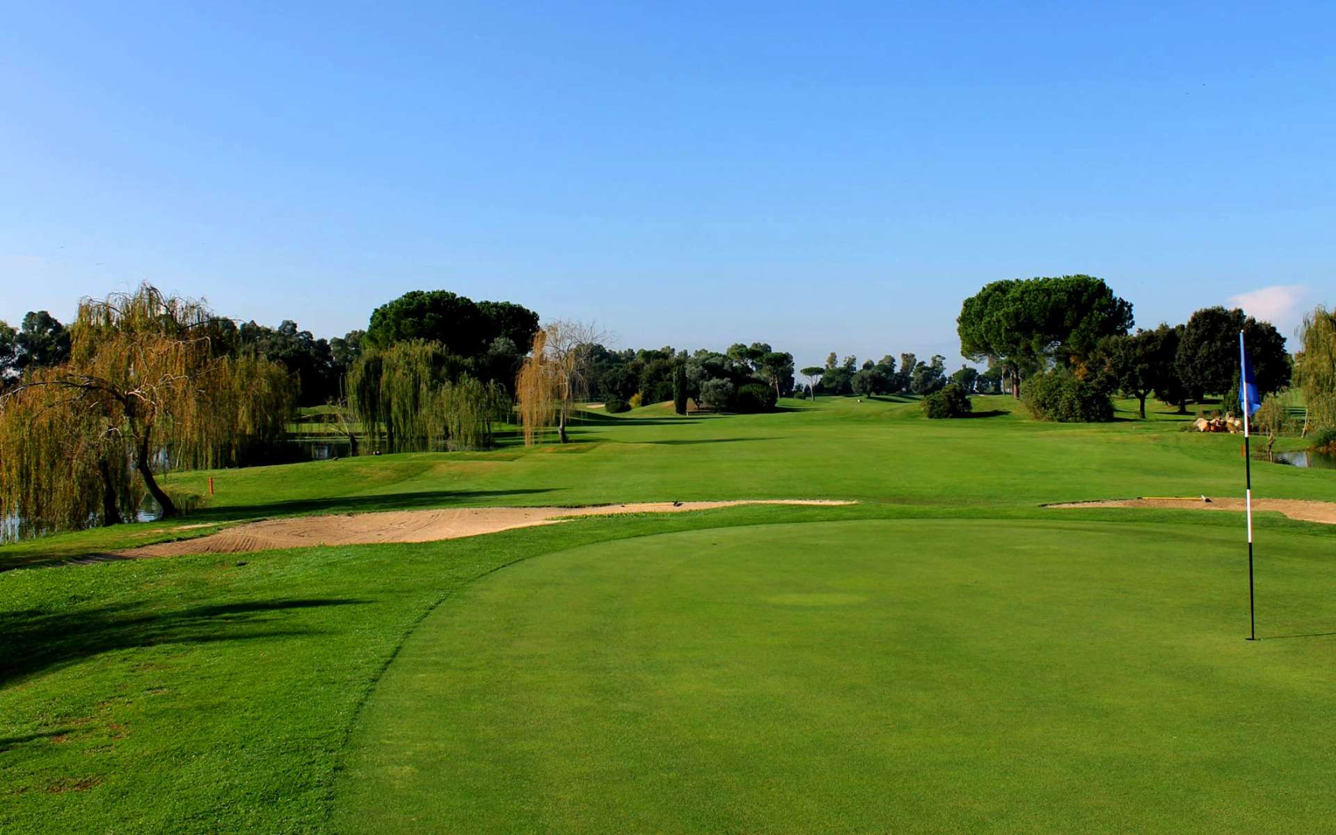 Situato a soli 12 km dal centro di Roma, è stato realizzato nel 1990- bonificando un’area completamente spianata e brulla atta a poter accogliere quello che avrebbe dovuto essere il grande idroscalo di Roma, opera mai completata e poi definitivamente abbandonata. È uno dei pochi percorsi italiani che ricorda i celebrati links scozzesi: trovandosi fra Roma e il mare, il gioco è influenzato dalla brezza marina. Si tratta di un percorso molto tecnico, ricco di ostacoli d’acqua costituiti da 6 laghetti meta di uccelli migratori. Lungo il fairway della buca 18, si trovano i resti di una costruzione romana del I° sec. a. C. Il percorso rosso (nove buche) è stato disegnato dall’architetto Fabiano Rebecchini. Alcune buche sono particolarmente “delicate”: ampi greens e lunghissimi tees facilitano il gioco ai giocatori meno esperti. Accanto è situato lo Sheraton Golf Hotel & Resort, delizioso albergo con 836 camere e suites, piscine, palestre e centro congressi. La Club House Golf Parco de' Medici è un luogo veramente esclusivo, raffinatamente country con ampie vetrate che affacciano direttamente sui putting green ed i laghi, ideale per premiazioni, sponsor village e vip meeting point. La Sala Limonaia, un grazioso salotto con camino, in casi eccezionali disponibile per presentazioni culturali, rassegne, interviste, conferenze stampa, presentazioni. Il Ristorante della Club House è a tua disposizione a pranzo con un buffet ricco di prelibatezze sapientemente cucinate con ingredienti locali, a km 0.